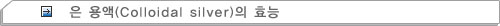 ÄÝ·ÎÀÌ´Þ ½Ç¹ö(Colloidal silver)´Â ÀºÀÌ¿ÂÀ» ¹«±¤¹° ¼ø¼ö¿¡ ³ìÀÎ ÇüÅ·μ ÀºÀ̿ (Ag+)»óÅ·ΠÄÝ·ÎÀ̵åÈ µÈ °ÍÀÌ °¡Àå »ì±Õ Ư¼ºÀÌ ¿ì¼öÇÑ °ÍÀ¸·Î ¾Ë·ÁÁ® ÀÖ´Ù.